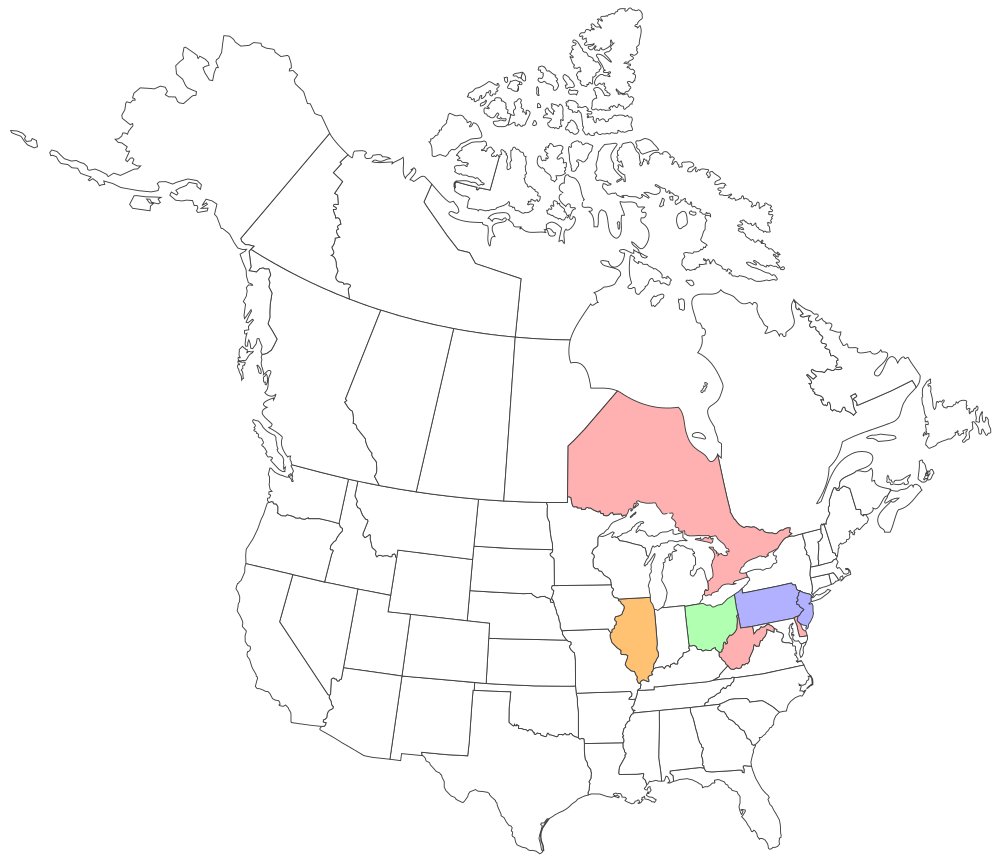 Most of my dad’s side of the family comes from Ohio with my great-grandmother’s parents also coming from Illinois. My maternal grandmother’s family is entirely from Pennsylvania and my maternal grandfather’s family is entirely from New Jersey. Both had ancestors in the state for generations before they both met and married. I also thought it was interesting to note that only three out of the 16 were born in a different state than they married in, so I tried to represent that in the red states.
