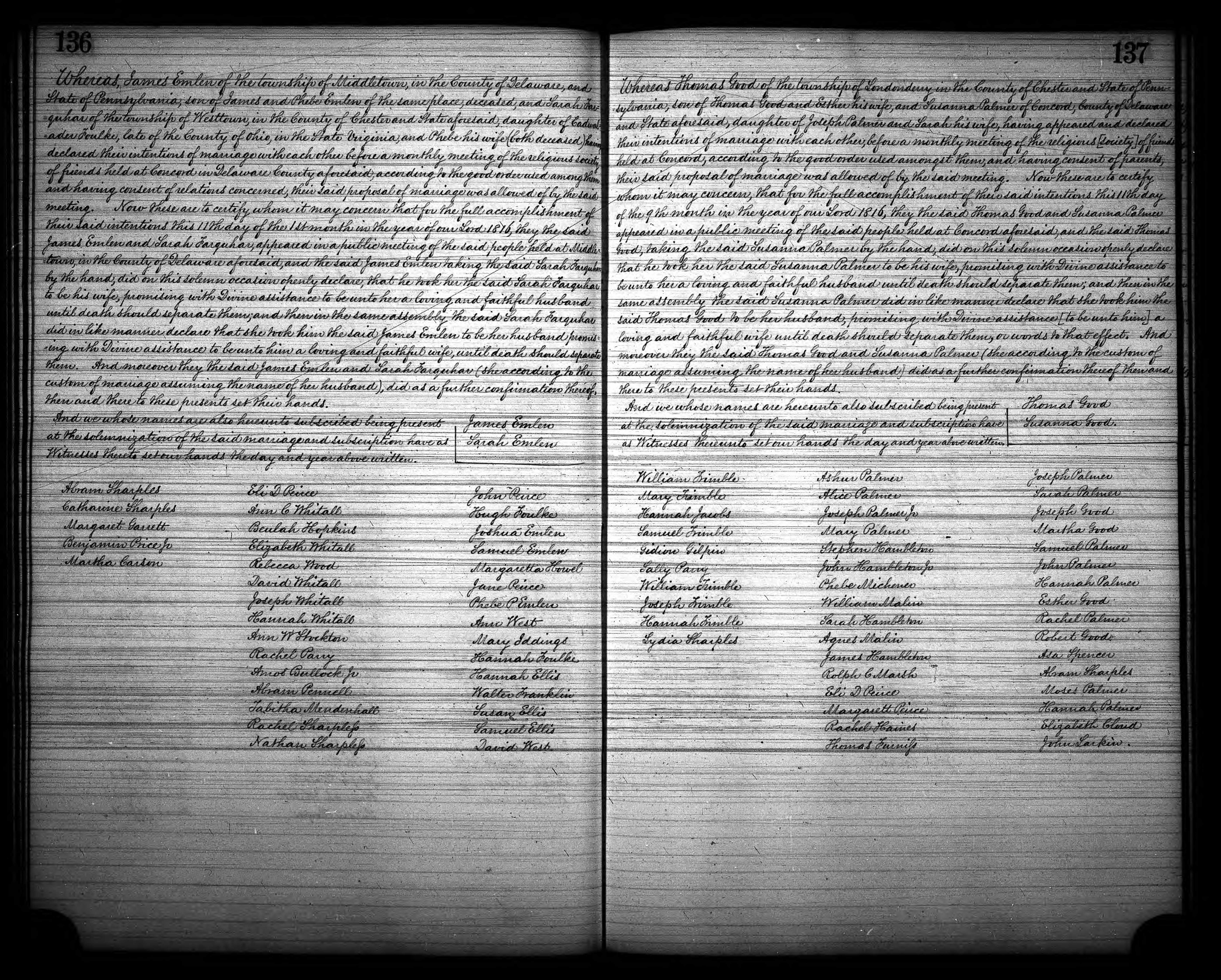 Emlen 1816 Marriage James Sarah